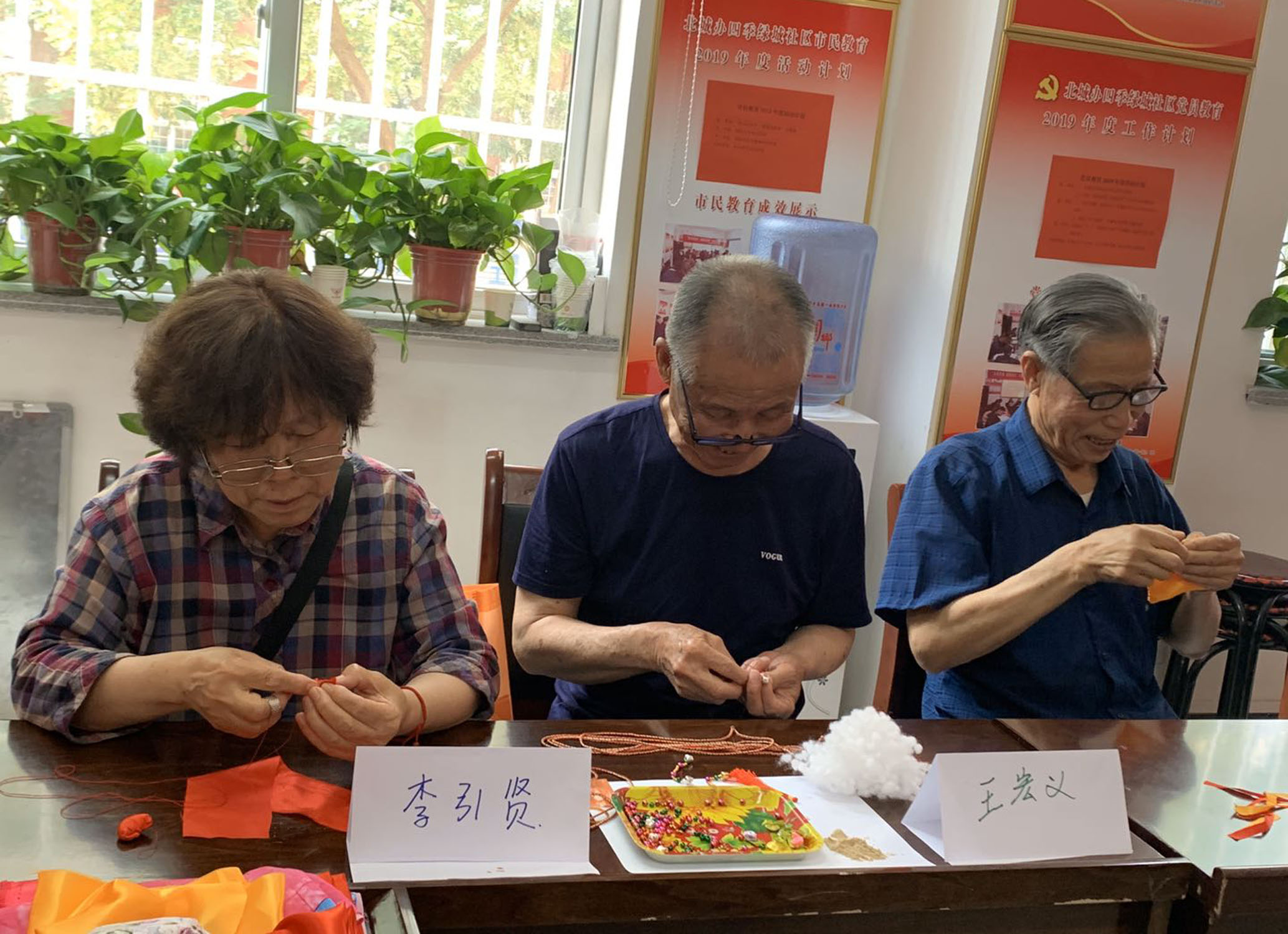 活动一开始,社工服务中心的几位老师先把做香包需要的花布、珠子、彩绳、香草、朱砂等材料发放给居民,然后讲解了各种香包的制作步骤。随后,大家各自选样开始缝制。大家一边缝针一边讨论,不一会儿,一个个造型各异、立体饱满、美轮美奂的精致小香包就大功告成。