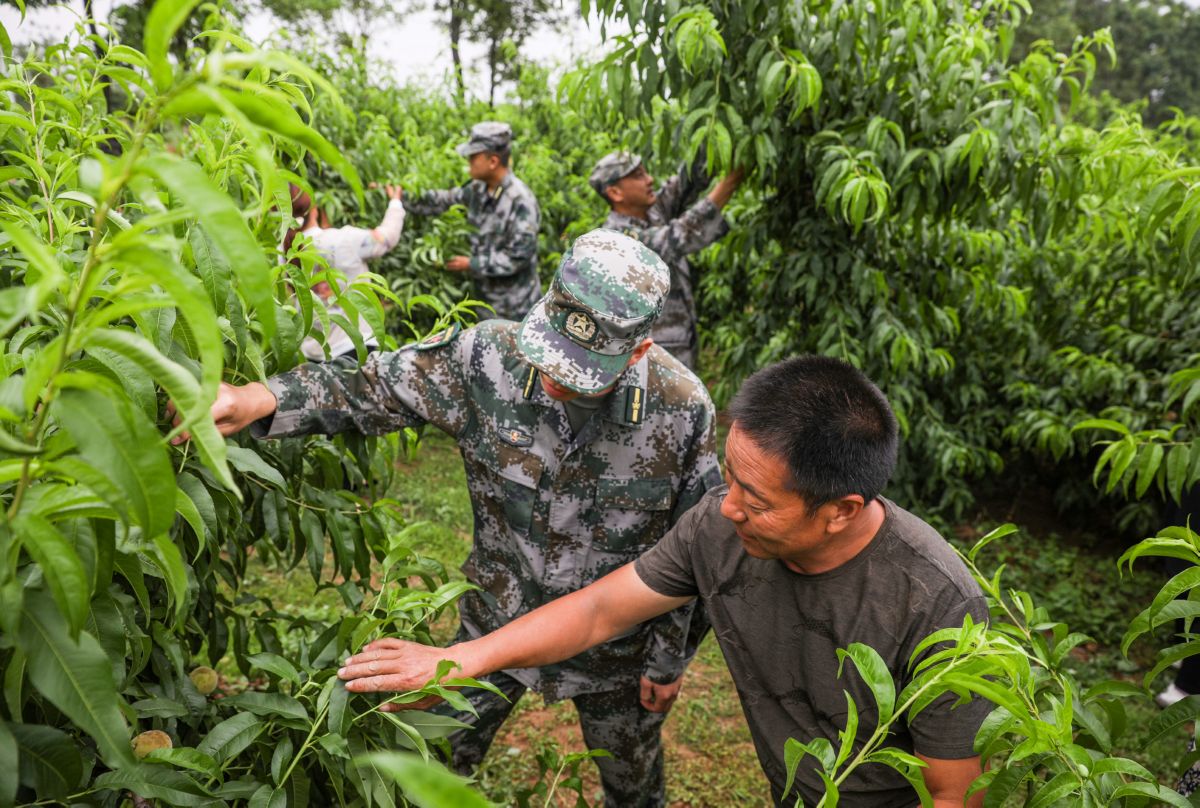 6月18日,运城军分区的战士和帮扶村平陆县张店镇陈张村村民一起劳动。