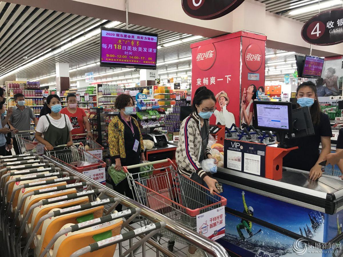 上午10点半,市区亿适家超市已陆陆续续有顾客光临。记者看到,在超市的入口和出口处,都有专员给进入超市的顾客测体温,并查看是否佩戴口罩。