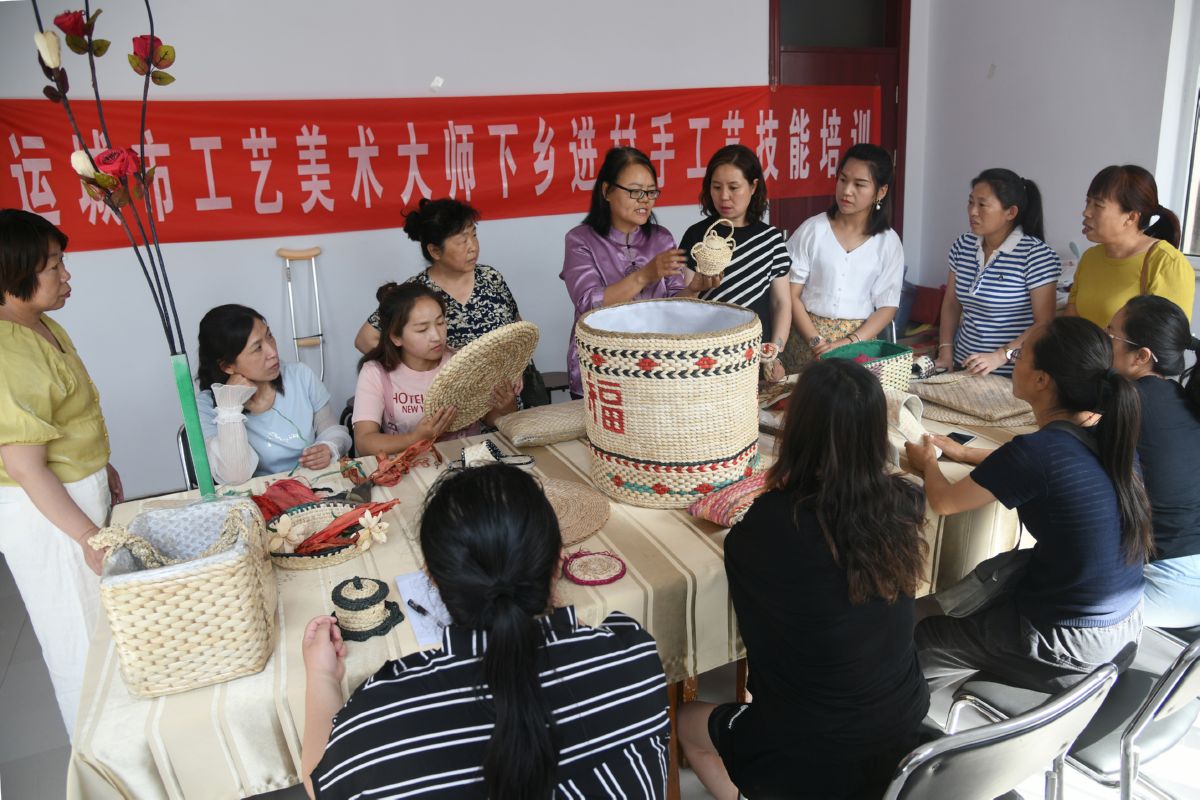 6月17日,山西省省级非物质文化遗产草编工艺传承人叶菊英在闻喜县三一社区为居民讲授草编工艺技术。