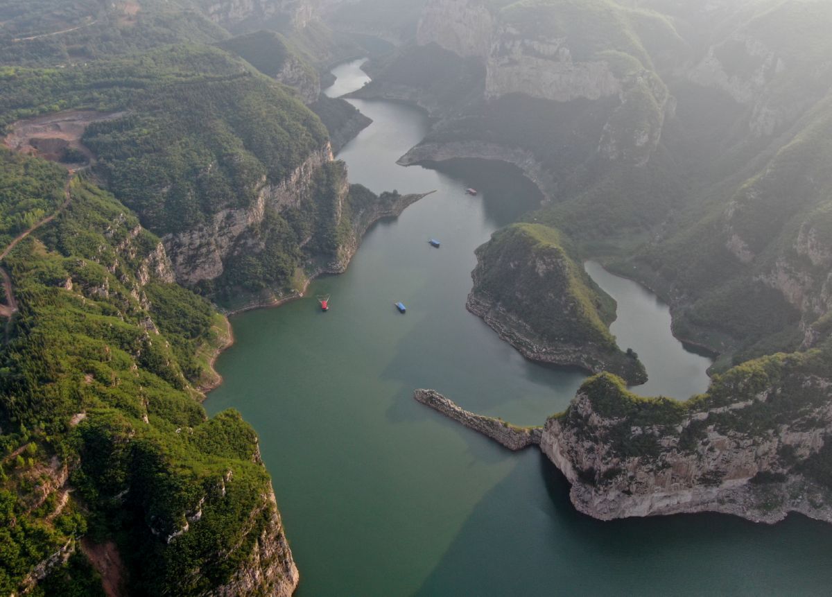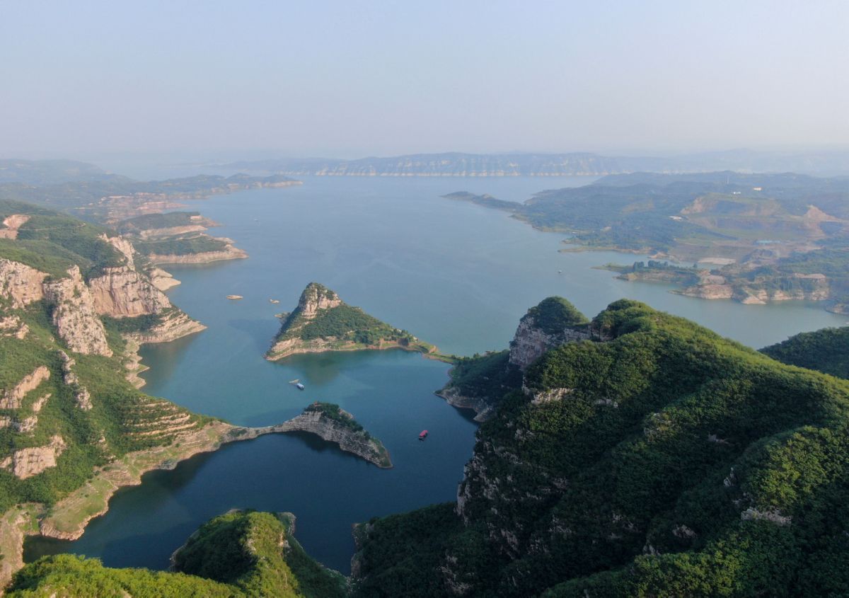 黄河小浪底水利枢纽工程位于黄河中下游。夏日里,山水交融,景观壮美。 新华社记者 郝 源 摄