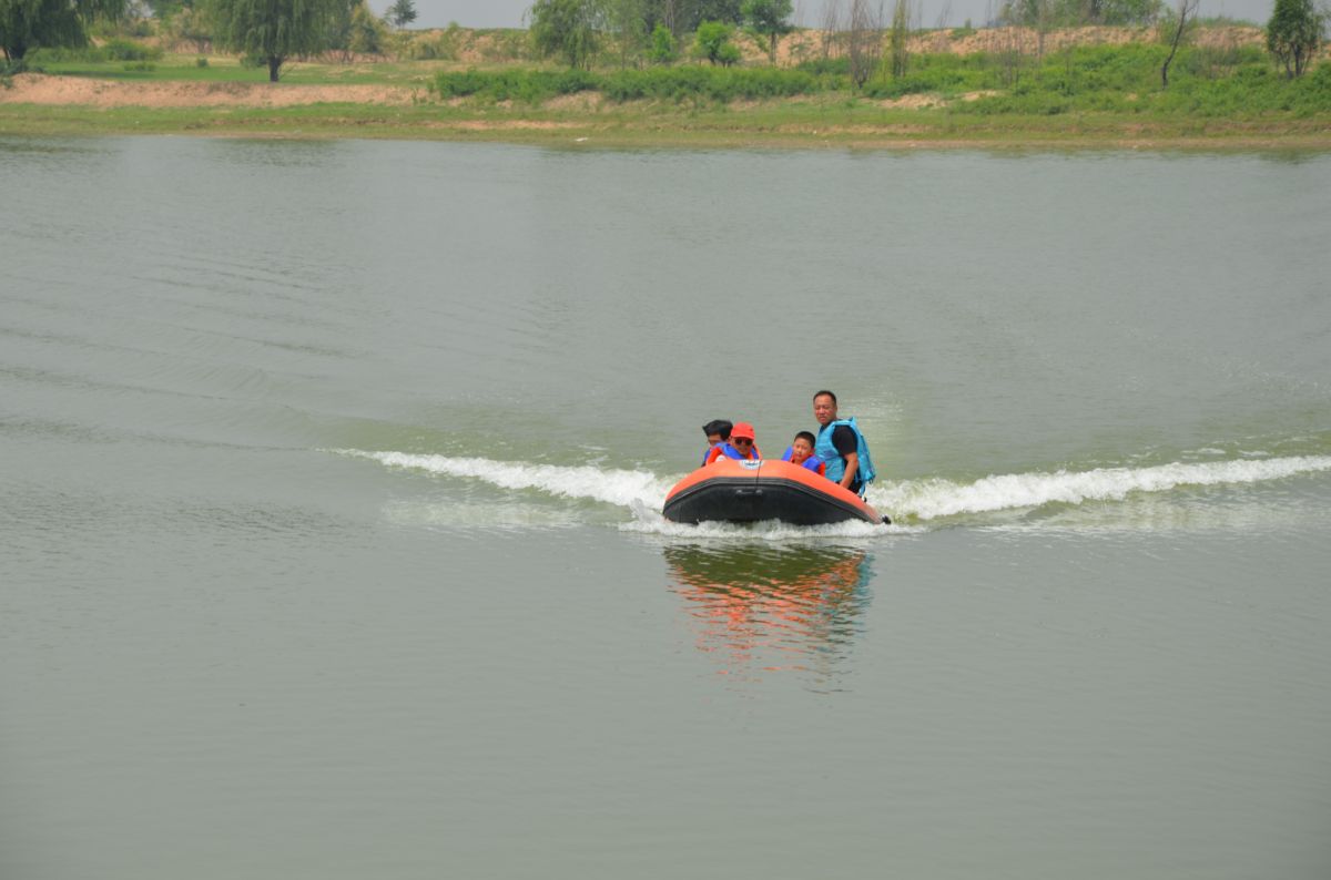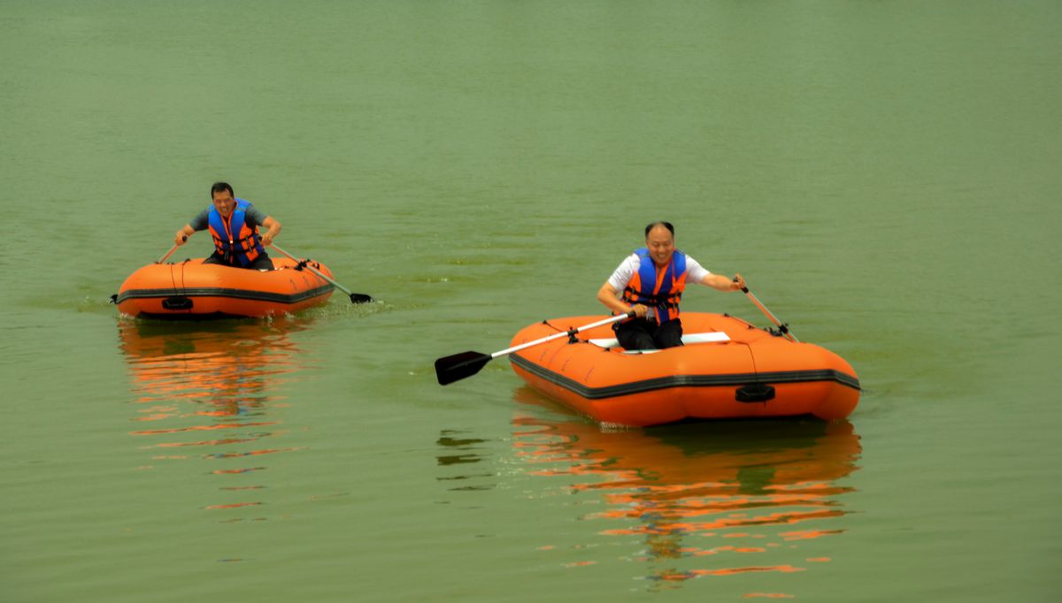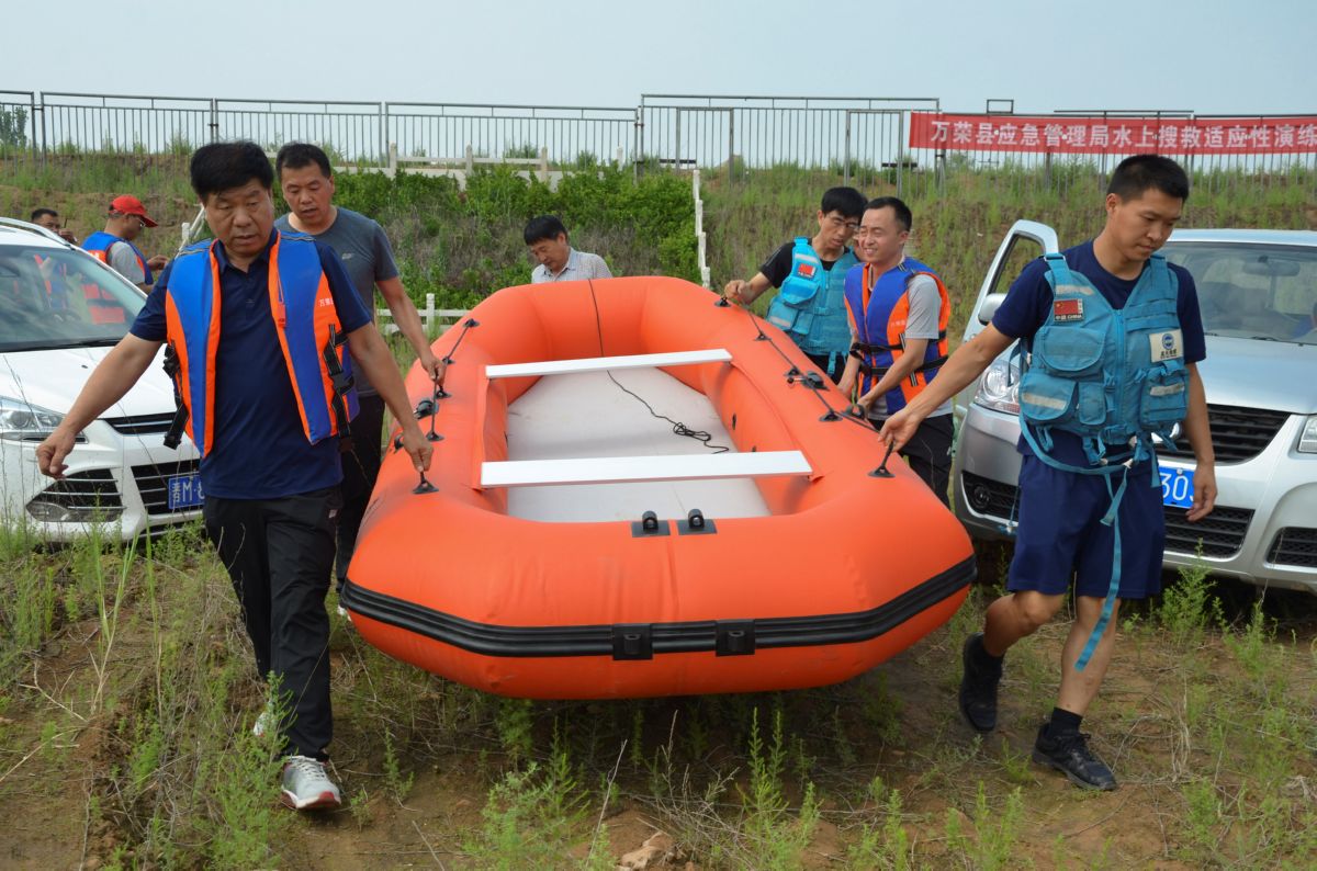 ▲6月20日,万荣县应急管理局工作人员抬着橡皮艇下水。
