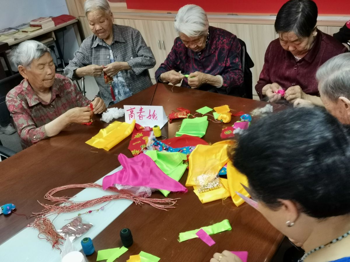 当天,来自“巧手八一”团队的十余名手工爱好者共同展示技艺,为居民缝制香囊。这些手工爱好者平均年龄70岁,每逢社区举办活动,他们都会一展手艺,为居民制作各式各样的手工艺品。手工爱好者用社区工作人员准备好的绸布、针线、香草、彩珠、铃铛等,包香料、做造型、缝花边……不一会儿,色彩丰富、造型各异的香囊就呈现在大家面前。