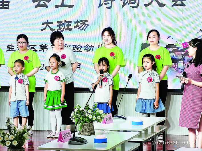 据悉,该园一直注重传统文化对儿童的教育。诗词大会今年已是第四届,由于疫情原因,本届采取“云上”和现场比赛相结合的模式,以年级组为单位开展。小选手们经过层层选拔,决出各个年级的第一名参加总决赛,最终角逐总冠军。不仅如此,本次比赛还邀请了该园帮扶的幼儿园——王范幼儿园、北相中心幼儿园、泓芝驿学校幼儿部和李村幼儿园的7名小朋友前来参赛。