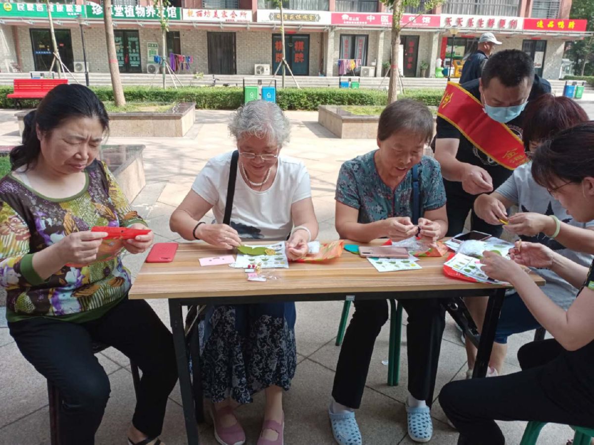 活动中,社区工作人员、志愿者和居民一起缝制香包和参加有奖知识问答。在缝制香包过程中,社区工作人员和居民一边缝制,一边交流香包的缝制技术和佩戴香包的好处;有奖知识问答的内容则围绕端午节的由来、习俗、意义等方面开展。接着,社区工作人员给参加活动的居民分发粽子,让大家一起提前过节。