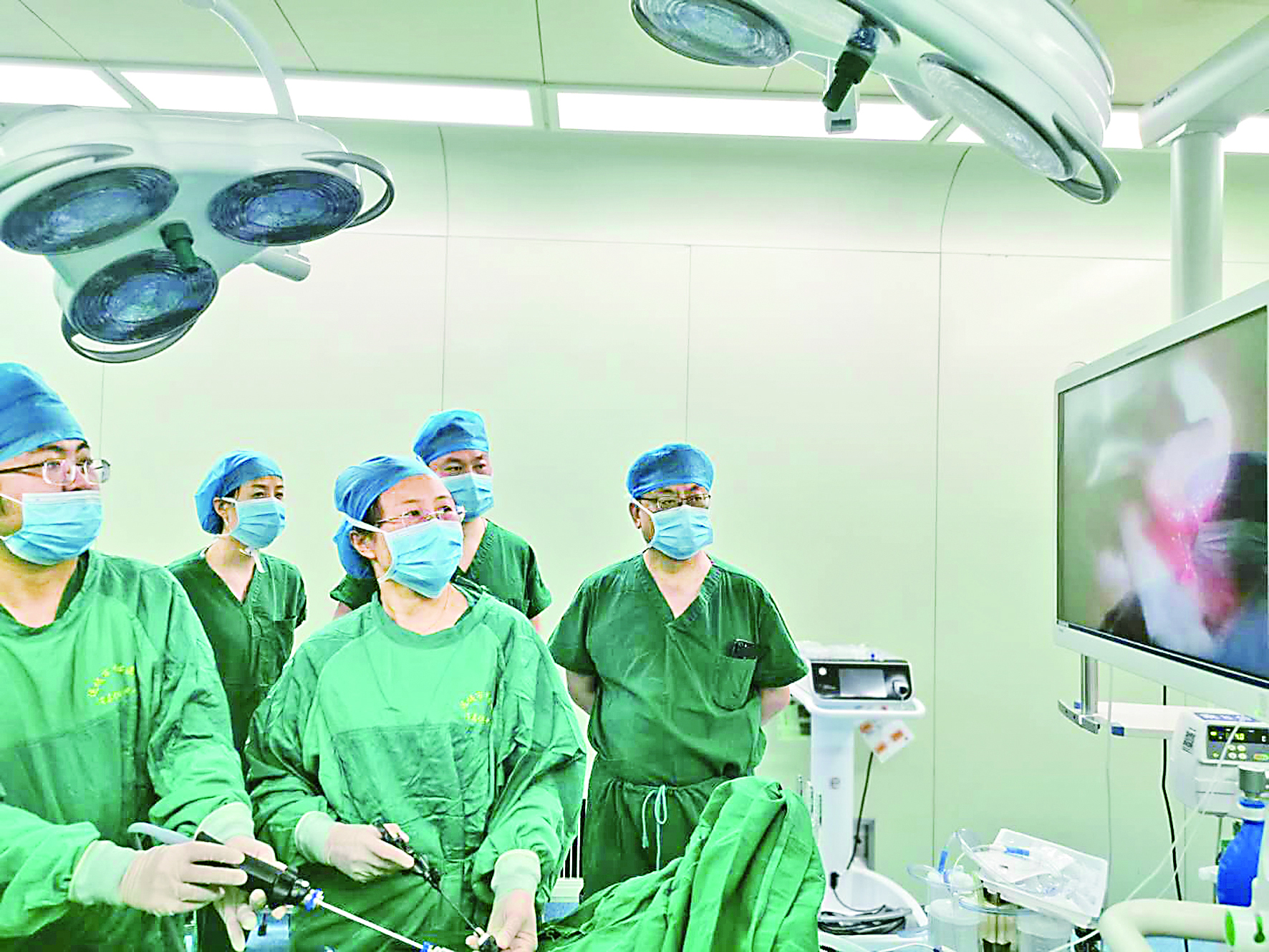 市中心医院“凤还巢”专家、省儿童医院新生儿外科主任任红霞(前排左二)为“小禾”进行手术