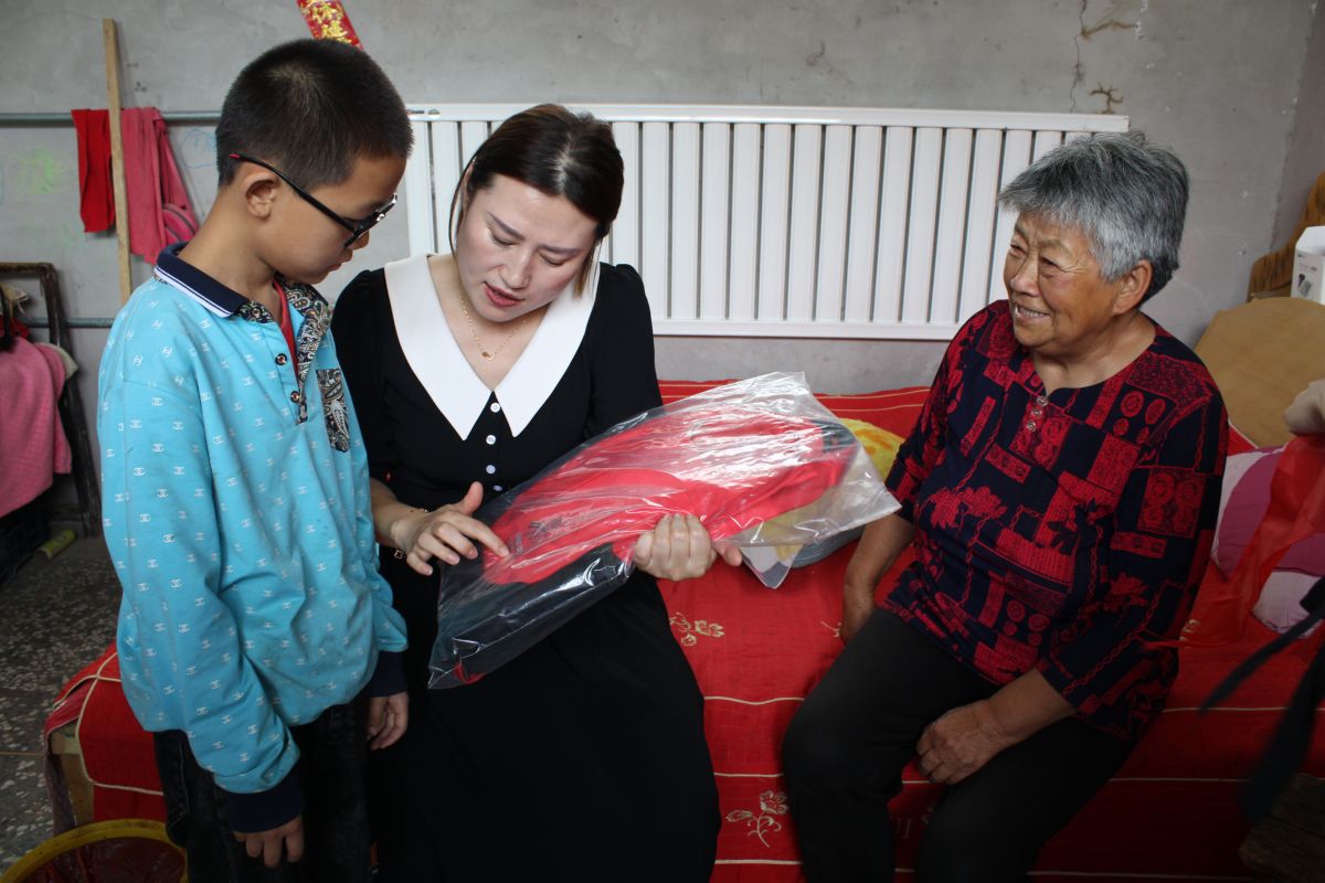 讲座之后,丁小玲为学生们送上书包和笔记本,并勉励他们放平心态迎接中考,及时舒缓压力,努力考上心仪的高中。