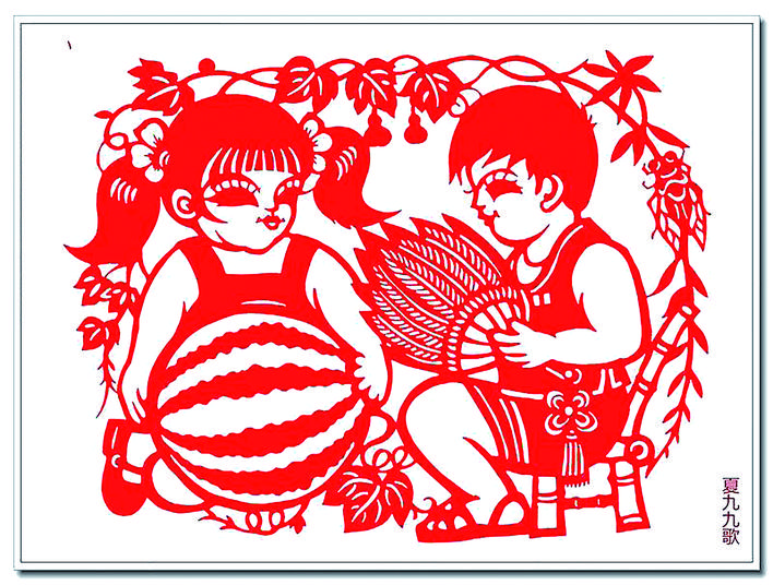 我国农历中“九”是习惯用的杂节,“夏九九歌谣”形象地道出了夏至后的天气变化,生动地反映了日期与物候的关系。“夏九九”是以夏至那一天为起点,每九天为一个“九”,每年九个“九”共八十一天。同样,三九、四九是全年最炎热的季节。它与“冬九九”形成鲜明的对照。“夏九九歌谣”最早是南宋人陆泳在《吴下田家志》中记载的,后来有人发现,此歌谣用松烟墨书写在湖北省老河口一座禹王庙正殿的榆木大梁上。歌谣云:“夏至入头九,羽扇握在手;二九一十八,脱冠着罗纱;三九二十七,出门汗欲滴;四九三十六,卷席露天宿;五九四十五,炎秋似老虎;六九五十四,乘凉进庙祠;七九六十三,床头摸被单;八九七十二,子夜寻棉被;九九八十一,开柜拿棉衣。”近年来,一些网友在网上发布了自己撰写的当代“夏九九歌谣”,将一些新生事物写入其中,也颇为有趣。如:“一九二九温升高,摇扇风扇开空调;三九温高湿度大,冲凉洗澡来消夏;四九炎热冠全年,打开风扇汗不断;五九烈日当头照,无处躲来无处跑;六九时节过立秋,清晨夜晚凉飕飕;七九炎热将结束,夜间睡觉防凉肚;八九到来天更凉,男女老幼加衣裳;九九时节过白露,过冬衣被早打谱。”