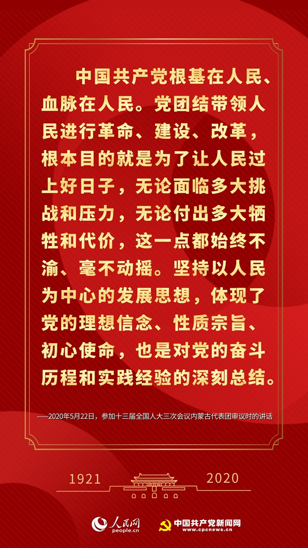 2020年5月,在参加十三届全国人大三次会议内蒙古代表团审议时,习近平强调,党团结带领人民进行革命、建设、改革,根本目的就是为了让人民过上好日子。