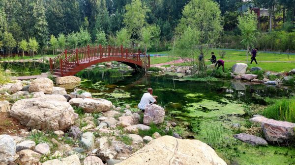 在王茅镇西王茅村,村边一片面积不大的杨树林如今成了市民周末休闲的好去处。当地一个村民承包了这片树林,提供户外烧烤服务,一天收益最多时达到5000元。边上不远处就是刚完工没多久的集水源地保护和休闲娱乐于一体的五龙泉水源地及集中供水工程,草坪、小桥、流水,几个游人在水边嬉戏,和小游园没有什么两样。