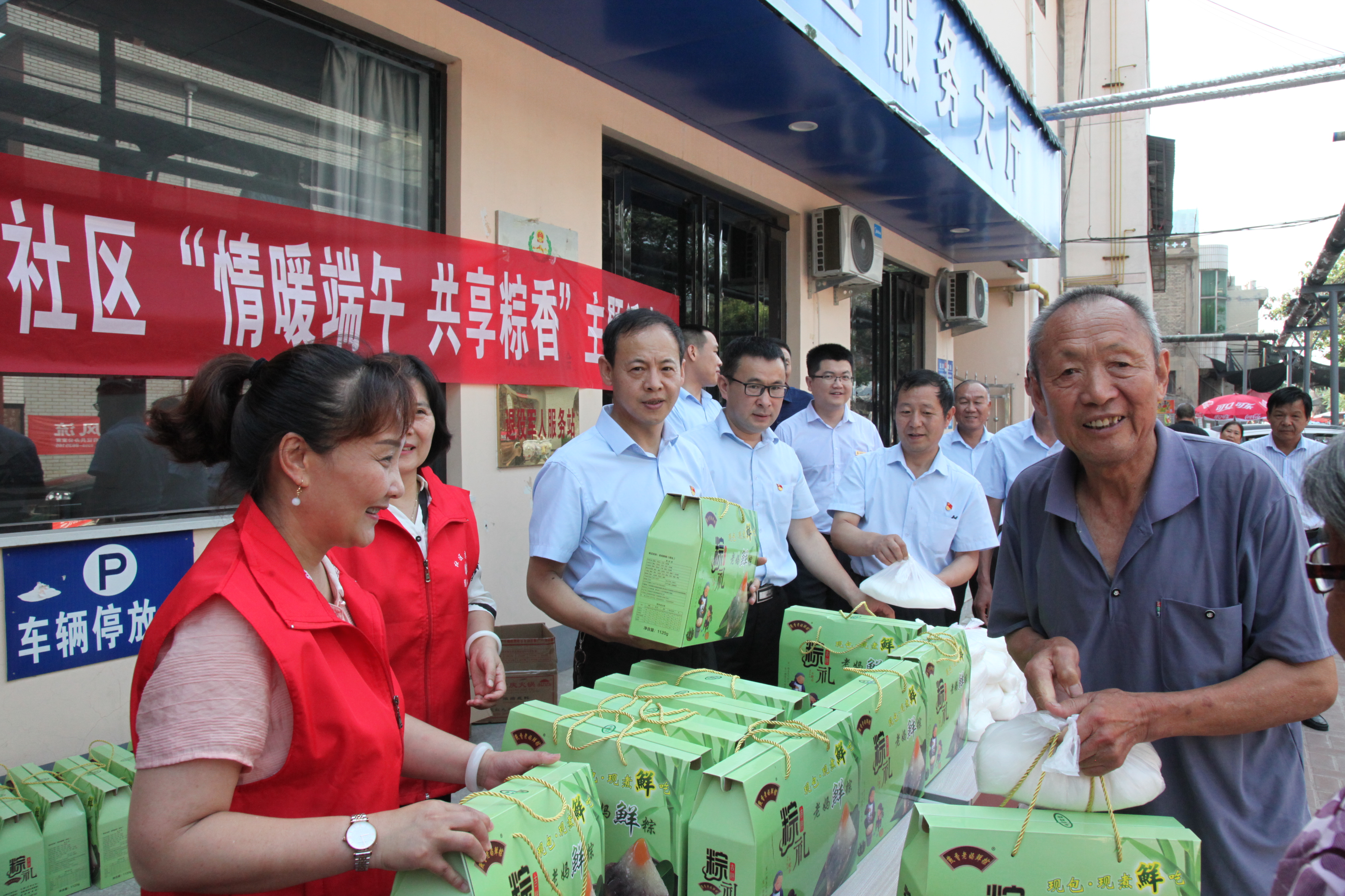 6月24日,端午节前夕,市宾馆党员干部到帮扶社区府东街社区慰问孤寡老人、环卫工人,为他们送去了粽子和白糖。曹秋玉 摄