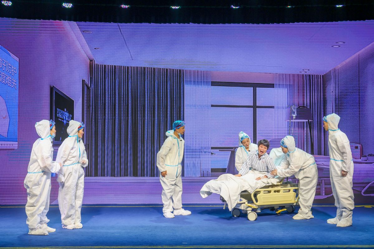 晚会在国家一级演员苏鹏演唱的《党的女儿》中拉开帷幕。由该团青年演员褚晓丹、李红莉、张洁红、薛凤琴、郝俊义、王安武等联袂出演的抗疫情景剧《逆行之歌》,由年过古稀的蒲剧评论家王思恭根据我市中心医院支援湖北医疗队事迹创作而成,充分展现了我市医务工作者在党中央的统一部署下,听从党的召唤,舍小家为大家的博大情怀。他们医术精湛,视患者为亲人,演绎了大爱无疆、医者仁心的人间真情,塑造了白衣天使“危难之时见行动,大义面前有担当”的光辉形象。值得一提的是,该团青年导演程小荣合理编排、精心打磨,为全剧倾注了大量心血,作曲程小亭充分发挥蒲剧音乐长于表达慷慨、悲壮的艺术特点,保证了该剧荡气回肠、催人泪下的艺术基调。