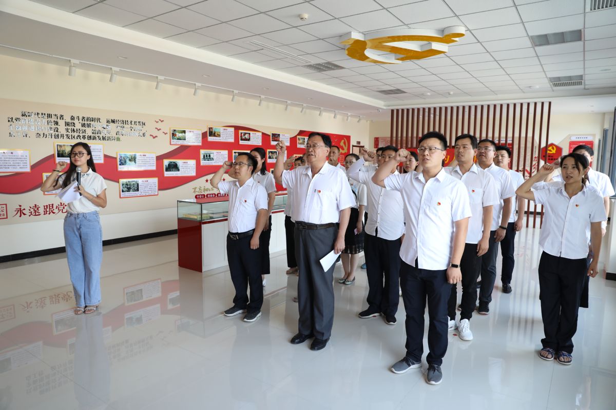 6月30日,运城经济技术开发区15名新发展的党员面对党旗庄严宣誓,立下了势为共产主义奋斗终身的铮铮誓言。