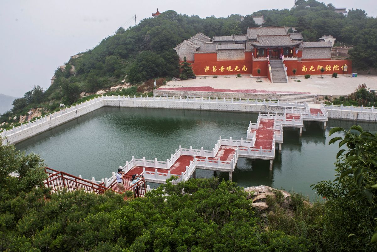 7月4日,在万荣县孤峰山顶,摄影爱好者在拍摄为引黄河水上山而新建的蓄水池。