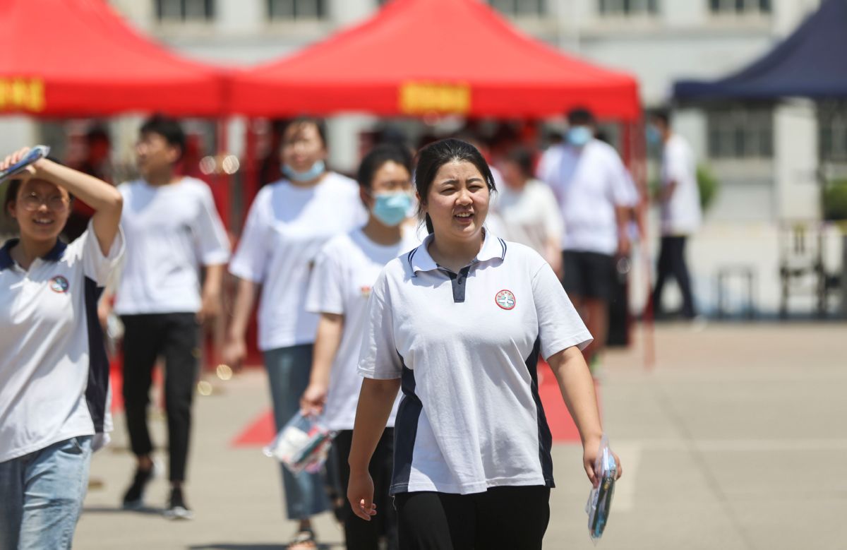 7月7日,稷山县稷王中学,上午第一场考试结束,考生走出考点。 史云平 史港泽