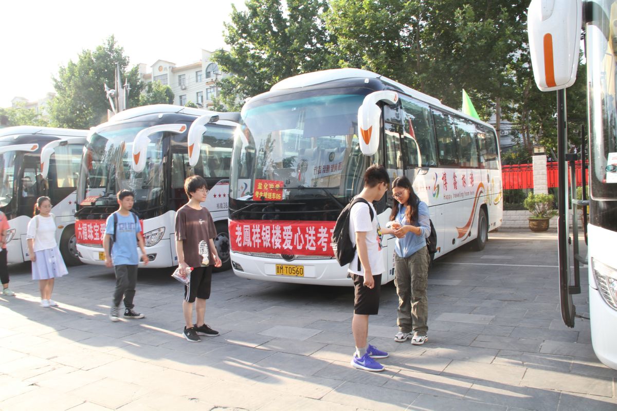 运城晚报讯(记者 王露)7月7日上午,200多名盐化中学考生登上“老凤祥银楼”提供的6辆送考车,出发前往各自的考场参加高考首场考试。今年已是“老凤祥银楼”第九年“爱心送考”。