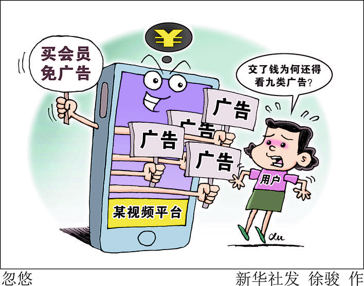 在这些协议中,各家平台均提出“VIP会员专享广告特权”,可“节省前贴片广告时间”,同时提出“可手动关闭精品影视、福利权益等会员专属推荐内容”。但可能令很多消费者忽略的是,协议还包含了“部分片源因版权方限制,仍可能会向您呈现不同种类的广告服务”等内容。 ——用新技术“定制”广告。不少用户发现,视频播放到一半时,会突然弹出“小剧场”广告——剧中的演员们会表演一段有剧情的内容,其实是产品广告。 除了“小剧场”广告,视频平台还利用大数据技术抓取用户信息,植入“定制”广告,实施精准推送。 ——用户协议权益不对等。一位业内人士说,平台法务人员制定的协议中,有些条款游走于灰色地带,强调规避平台责任、忽视用户利益。