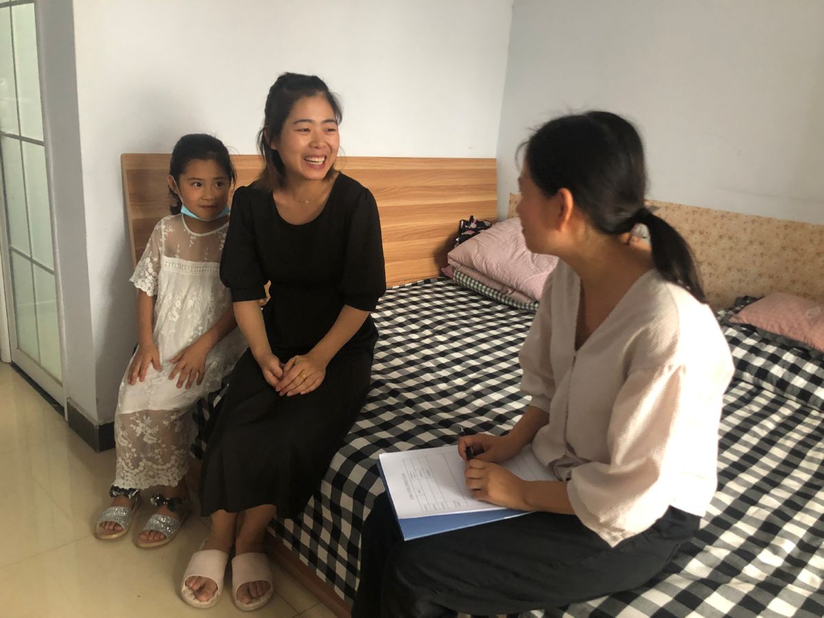 ▲杨倩(右一)在家访 王露 摄