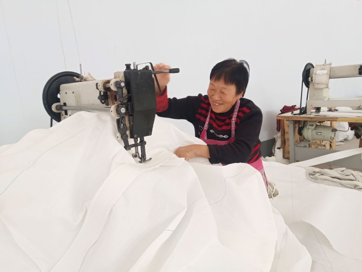 ▲平陆县龙源村村民在龙源缝纫加工车间工作 陶登肖 摄