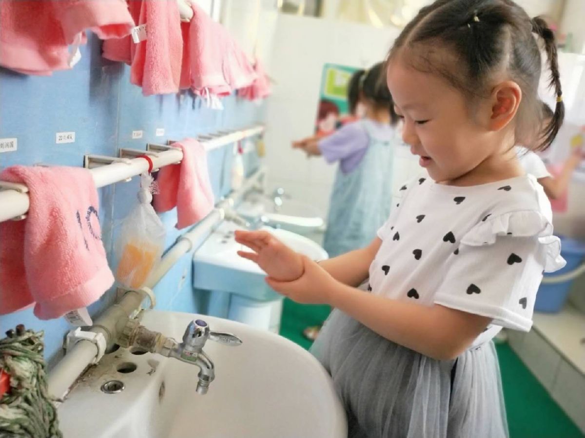 对于高频次触摸的地方,如卫生间、水龙头、楼梯扶手、门把手等,各园都增加了消毒次数,全力保障幼儿健康。