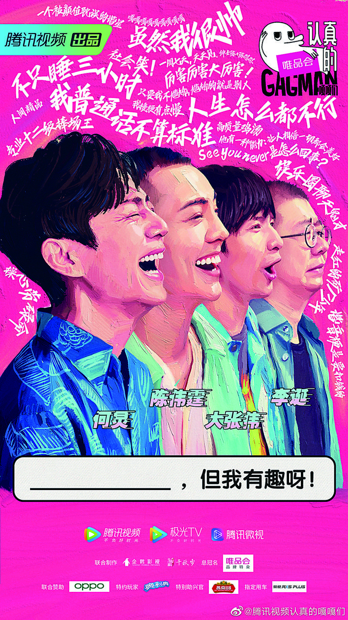 没有看节目的小伙伴一定好奇,这“嘎嘎们”是什么意思。“嘎嘎们”即英文“Gagman”,是指笑料作者、喜剧人。节目寻找的,正是具有专业综艺技能的“有趣综艺新偶像”。四位明星导师何炅、陈伟霆、大张伟、李诞,也都在综艺圈独树一帜:何老师纵横各大综艺节目,没有接不了的梗;陈伟霆虽是大众熟知的演员,但早年他在香港综艺里也打拼了许久;大张伟是出了名的名嘴,接梗和随口就来的名言警句常令人叫绝;李诞同样凭借不俗的临场反映,以脱口秀形式打开了一方喜剧人的天地。