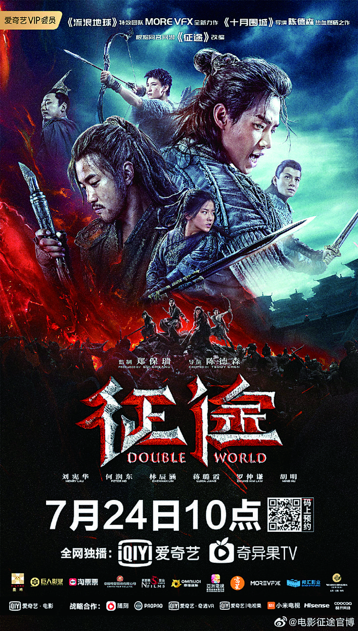 由陈德森执导,郑保瑞监制,刘宪华、何润东、林辰涵、蒋璐霞等主演的动作冒险电影《征途》,将于7月24日上线爱奇艺。这也是继《囧妈》之后第二部选择网播的大制作电影。《征途》改编自同名网络游戏,片中清源村少年东一龙与楚家军武士楚魂,为参加南赵国兵马大元帅选拔而踏上征途,途中遇上金刚小妹,三人结伴一起完成自己的使命。