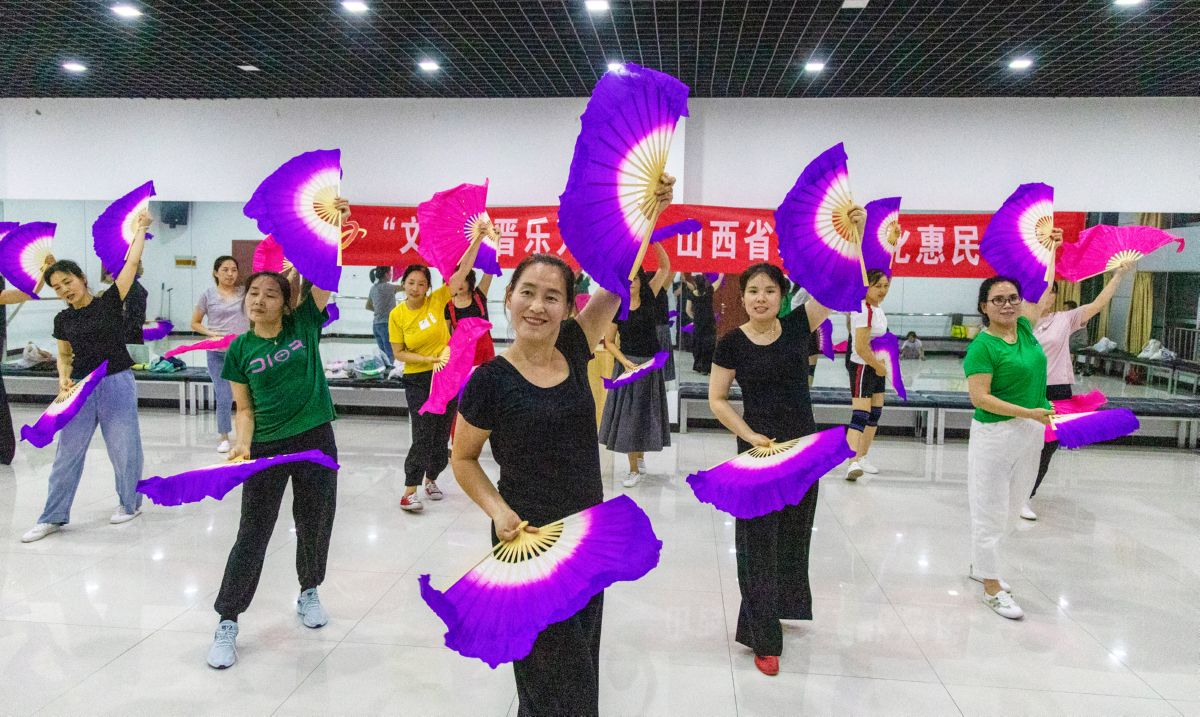7月18日,万荣县文化馆飞云舞蹈队的演员在加紧排练舞蹈《人说山西好风光》。