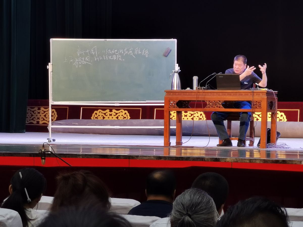当天上午,卫君翔以“新中国,以及她的发展脉络”为题,分享了共产党领导各族人民披荆斩棘建立新中国的历史画卷。他声情并茂、旁征博引,通过大量的史事,勾勒出中华人民共和国成立前后的鲜明对比,让人们再次深刻地意识到“没有共产党就没有新中国,是中国共产党彻底改变了近代以后100多年中国积贫积弱、受人欺凌的悲惨命运,中华民族走上了实现伟大复兴的壮阔道路”。