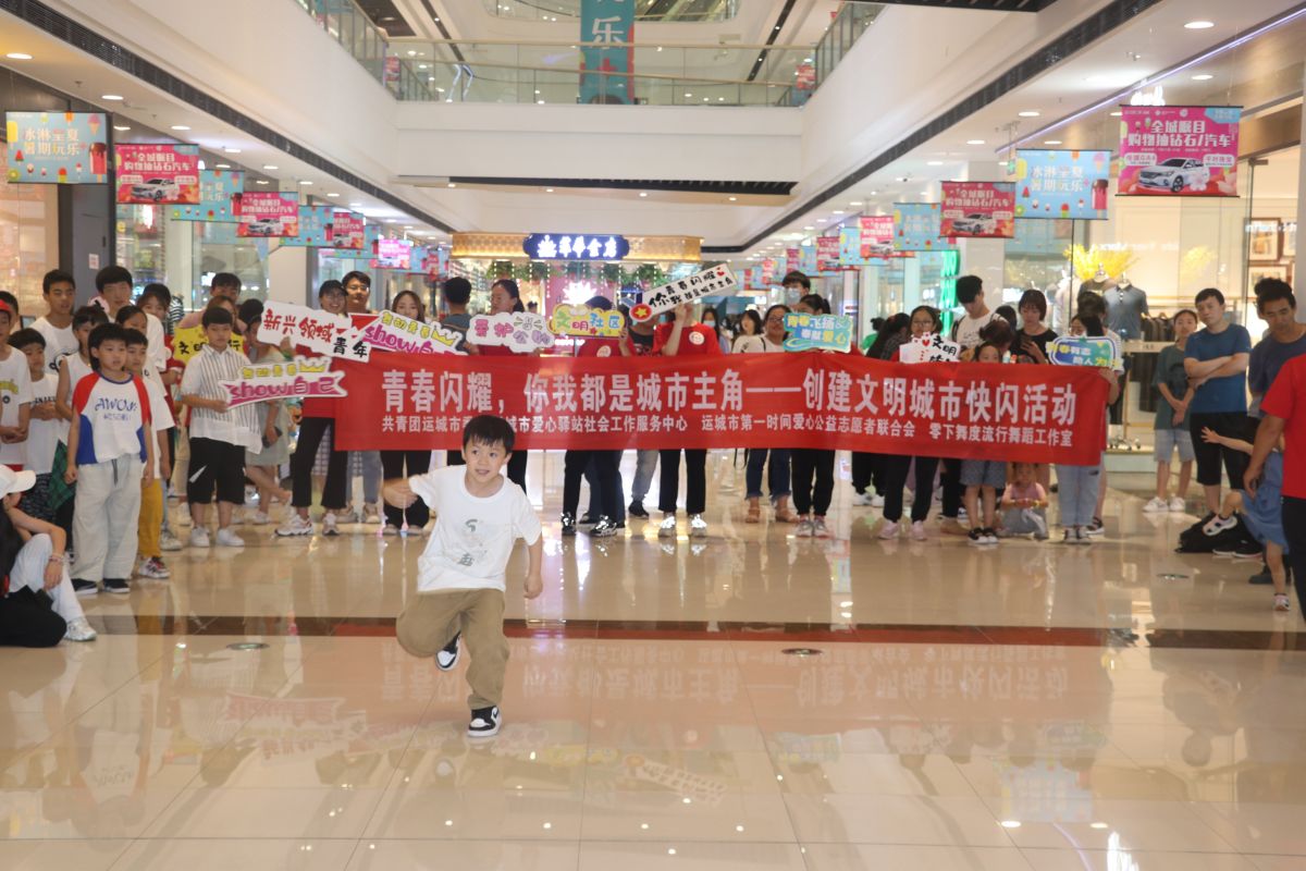 运城晚报讯(记者 冯杨婕)7月18日晚,伴着强劲的音乐,在市区万达广场出现了一群跳着街舞的学生和志愿者,他们用活力四射的舞姿,向过往的市民宣传文明城市创建。