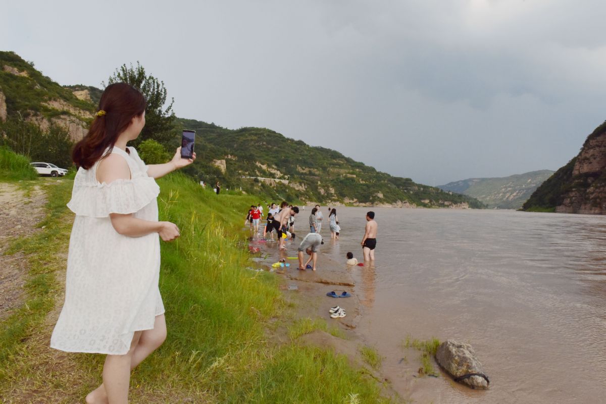 ▲近日,游客在平陆县坡底乡粮宿新村黄河岸边的粮宿滩赏景休闲。