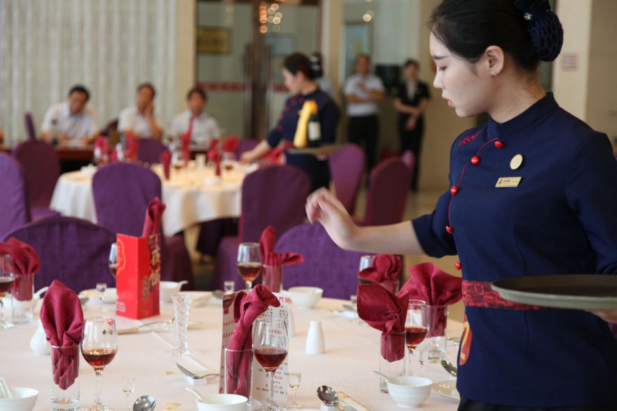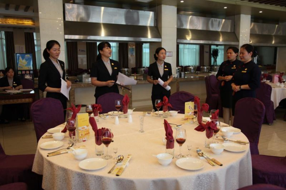 ▲7月18日,运城市宾馆在贵宾楼餐厅举办了第八届中餐宴会摆台大赛,来自晋南人家餐厅、贵宾楼餐厅的9名选手参加了总决赛。最终,贵宾楼餐厅的李慧娟、李玲、吴娟,晋南人家餐厅的卫宝华分别获得一等奖、二等奖、三等奖。