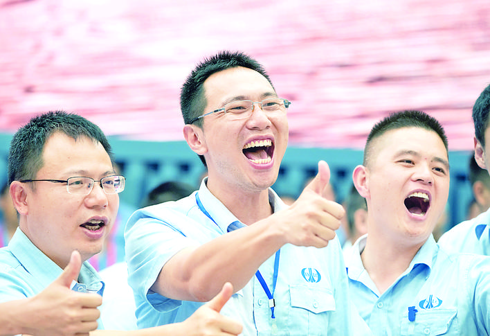 ◀7月23日,在中国文昌航天发射场测控大厅,航天科技人员庆祝发射成功。 新华社发