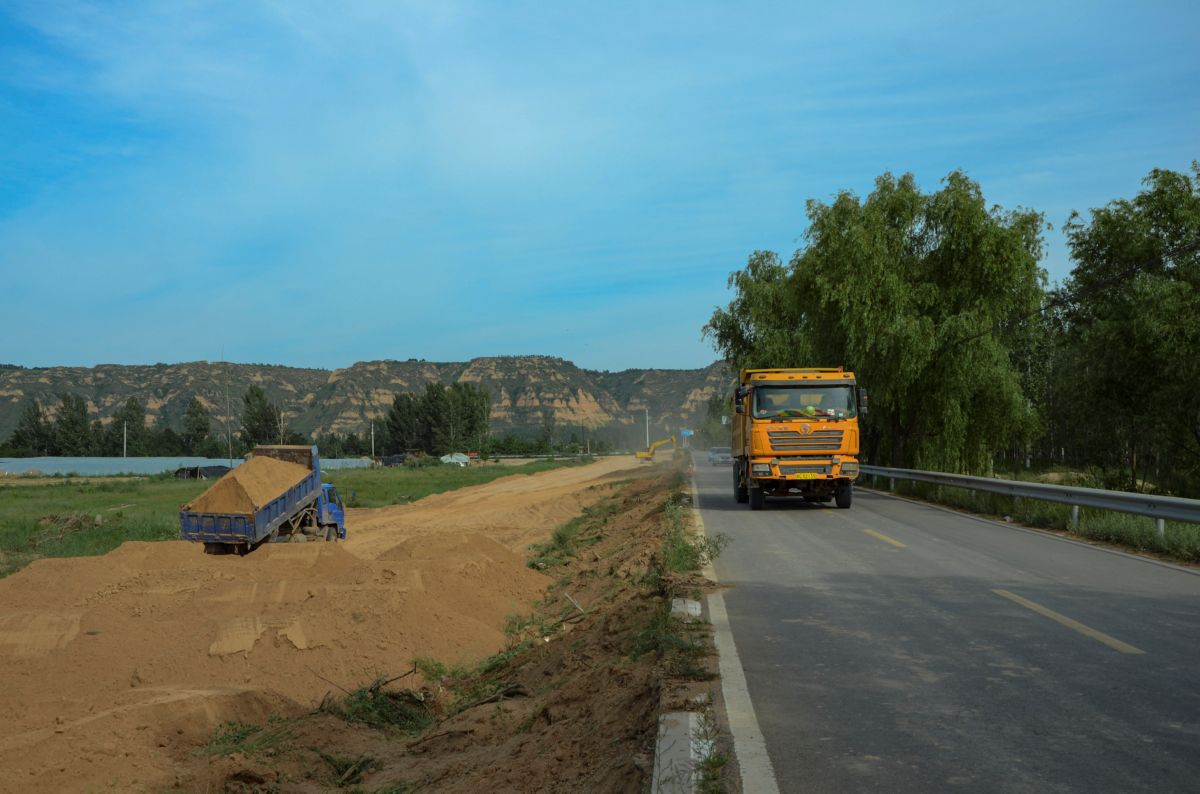 为了加强黄河流域的治理,万荣县对荣河镇庙前至河津的沿黄旅游路进行扩建和改造。该路由原来的9米单向两车道升级为宽18米的综合性旅游道路。其中,机动车道9米、绿化带3米、自行车道6米。