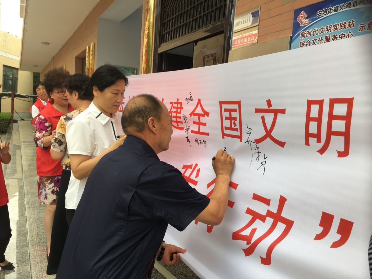 活动现场,社区工作人员向参加活动的人员宣读了《创建全国文明城市倡议书》,号召大家带头践行社会主义核心价值观,做文明人、办文明事,以实际行动影响和带动周围人自觉养成遵守社会公德、维护公共秩序、塑造文明形象的良好习惯。倡议书宣读完后,大家在“运城市创建全国文明城市签名活动”条幅上签名。