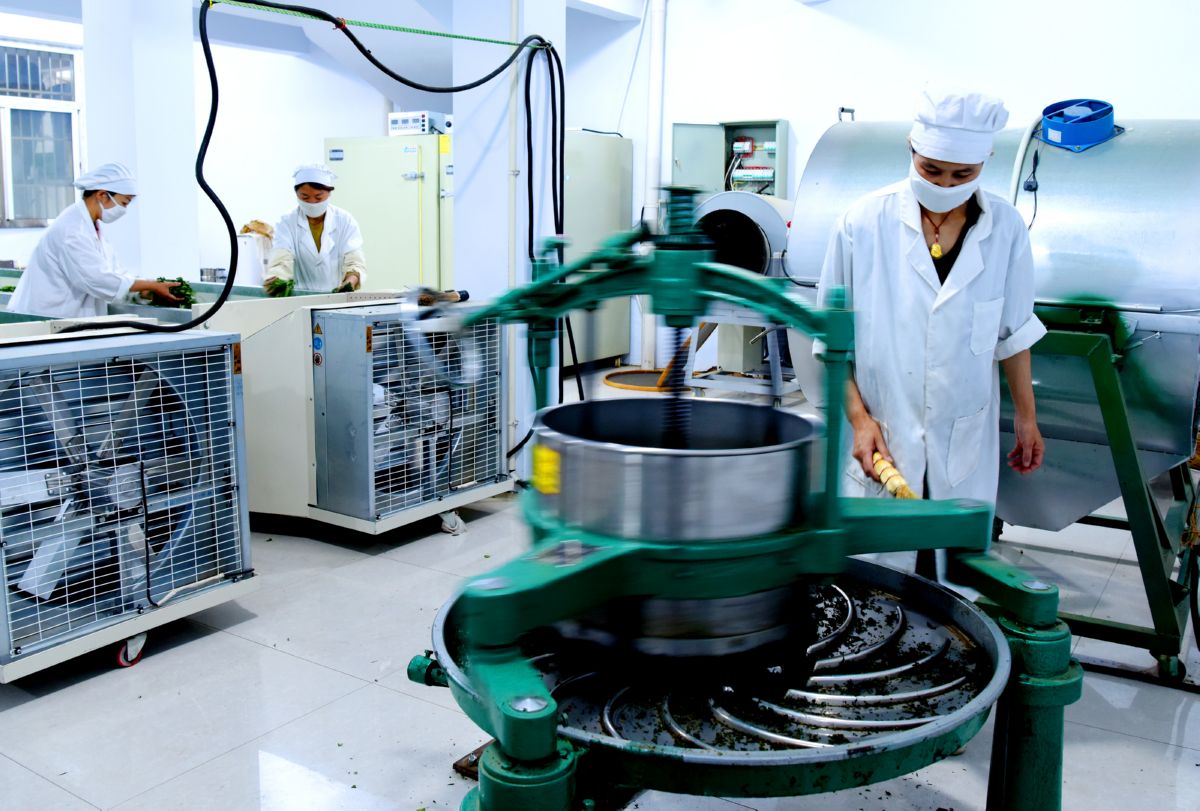 7月24日,垣曲县望仙康养茶业公司加工车间员工在制作药茶。