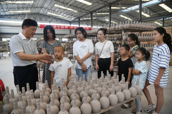 7月26日,闻喜县桐城镇王顺坡村“留守儿童之家”组织留守儿童走进闻喜县华隆瓷业有限公司感受陶瓷文化。