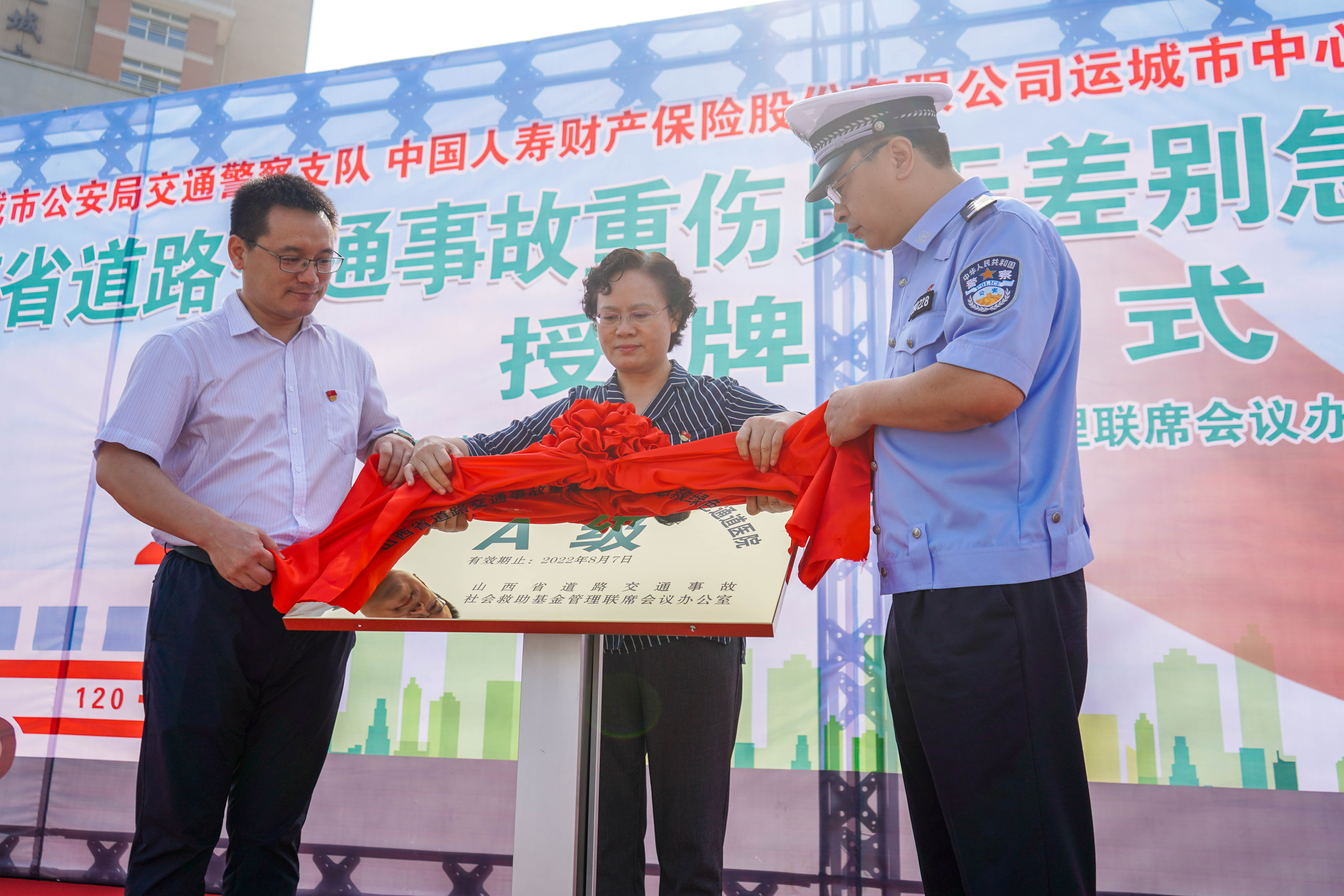 运城晚报讯(记者 樊朋展 李政奇)7月27日,市道路交通事故社会救助基金管理联席会议办公室联合“交通事故社会救助基金管理人”国寿财险运城中心支公司,授予运城市中心医院“山西省道路交通事故重伤员无差别急救绿色通道医院”牌匾。今后,市中心医院、市公安局交警支队、国寿财险运城中心支公司将共同搭建道路交通事故伤员快速救治绿色通道,提高对交通事故伤员的救治效率,保障交通事故重伤员急救费用。