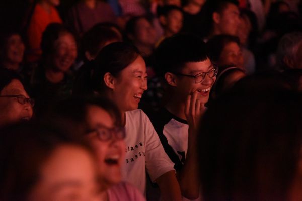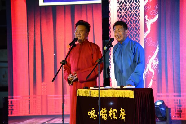 两位相声演员默契的捧逗,引得现场欢笑声不断,掌声不停。