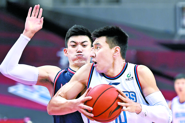 当日,在山东青岛举行的2019-2020赛季中国男子篮球职业联赛(CBA)复赛第二阶段(崂山赛区)比赛中,天津先行者队对阵时代中国广州队。 新华社记者 郭绪雷 摄