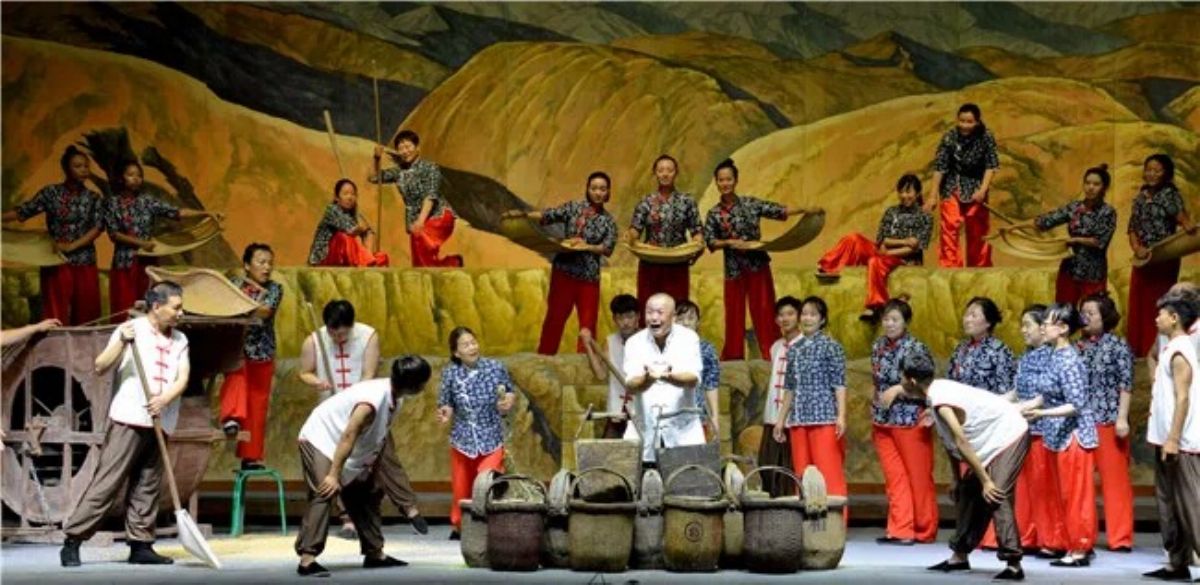 《食为天》全剧共分“封稷”“教稼”“耕播”“祈雨”“打场”5个篇章。稷山县是后稷故里,该剧以在稷山发端的古代农耕文化为题材,由远古时期演到现代社会,用音乐鼓舞表演形式,展现了农耕生产的变迁发展和人类自强不息的精神品格。整部剧融入了鼓乐、舞蹈、秧歌等艺术形式,加入了富有河东地域特色的扎马嚼、拳板舞等非物质文化遗产元素,使用了十多种鼓乐打击技艺,再现了古老的祭天祈雨、教民稼穑和庆祝丰收的场景。