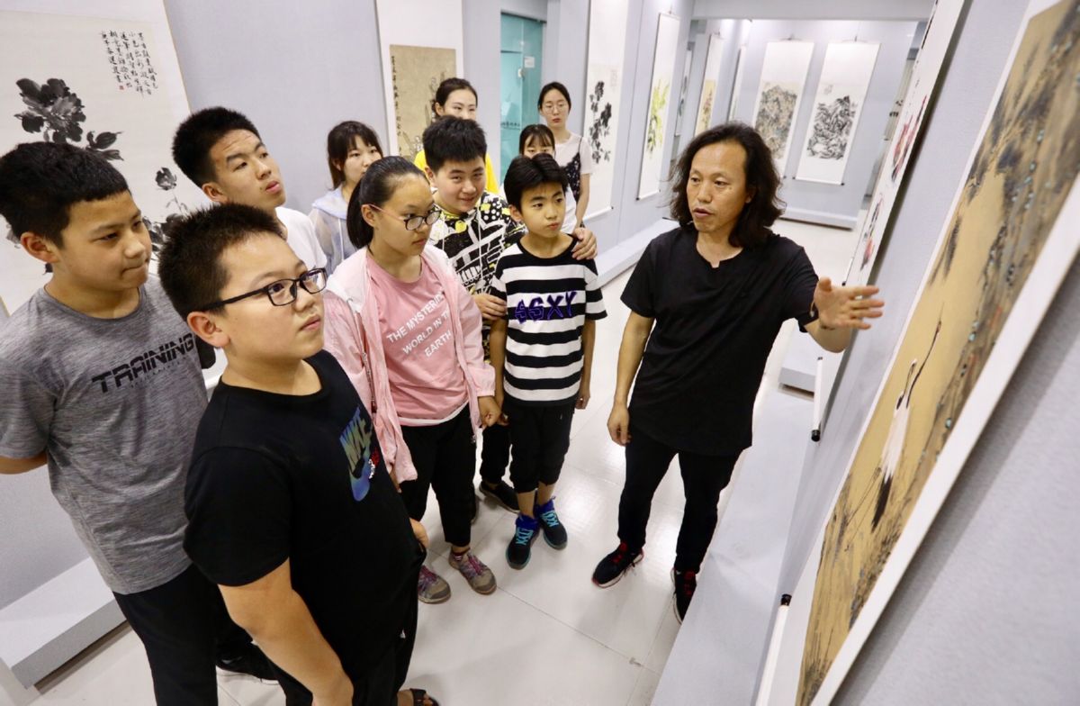 ⬆7月25日,尚行文化艺术中心的师生在观看国画展览。