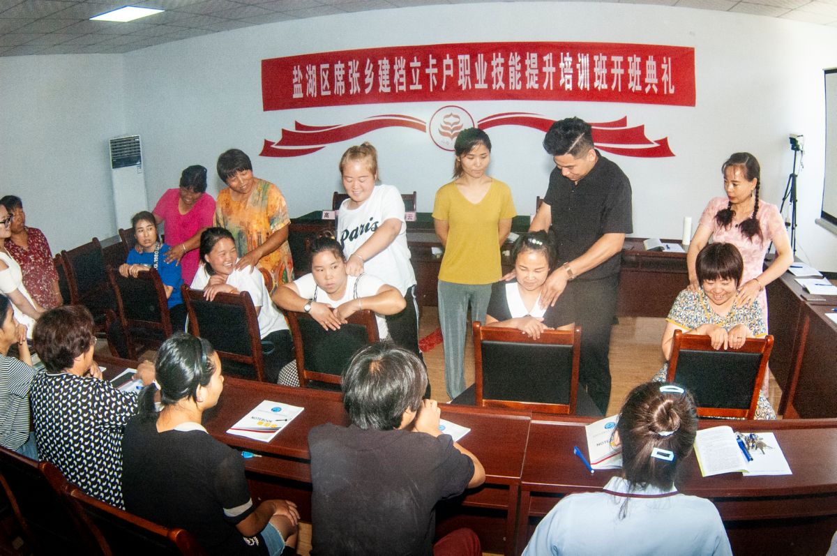 受疫情影响,今年盐湖区外出务工人数大幅减少。为解决待业人员,尤其是贫困群众的就业难题,盐湖区人社局加大技能培训力度,组织5个培训机构,开设了艺术化妆、中式烹调、保健按摩、家政保育等工种的培训课程,把课堂开到乡村,让群众在家门口免费学习技能,吸引了众多贫困群众积极参与。 特约摄影 任志坚 摄