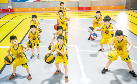 ▶7月30日,在河北省故城县,小学生练习运球。 暑假期间,河北省故城县多个体育健身中心为小学生们提供丰富多彩的健身活动,让小学生们在增长知识、强健体魄、陶冶情操的同时,度过一个愉快的暑假。 新华社发
