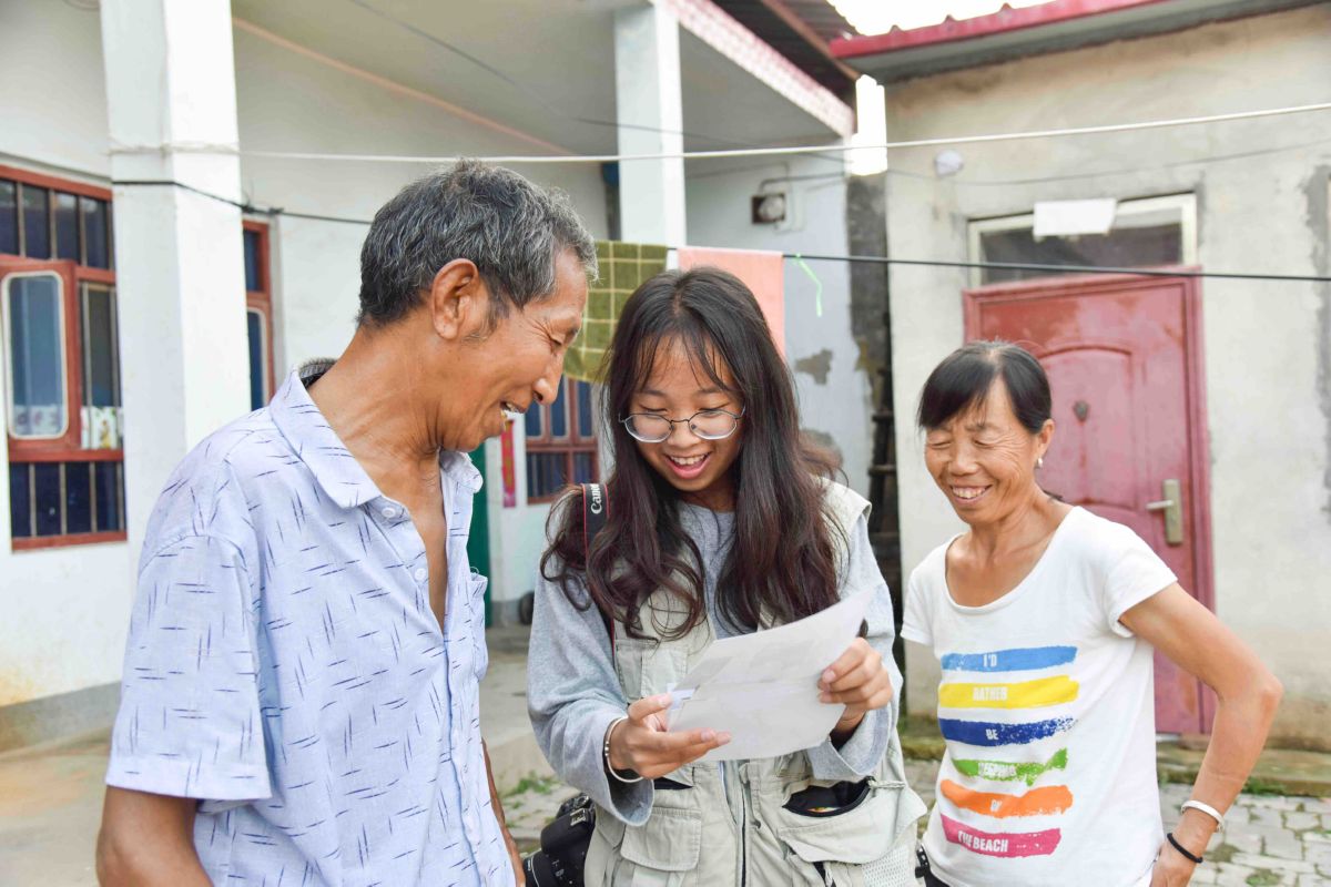在为期近半个月的“三下乡”活动中,大学生与驻村扶贫工作队一起,走进农户家,走到田间地头,宣传乡村振兴、脱贫巩固提升相关政策,积极开展志愿活动。在为该村拍摄脱贫攻坚相关主题纪录片的同时,了解到有村民多年没有拍过照,而且很多老人结婚时都没有拍过结婚照,学生们便萌生了为他们拍摄“全家福”和“结婚照”的想法。