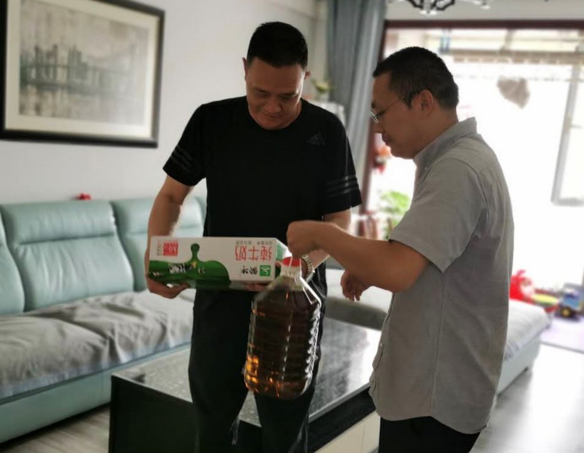 ▲社区工作人员给退役军人送慰问品 刘凯华 摄