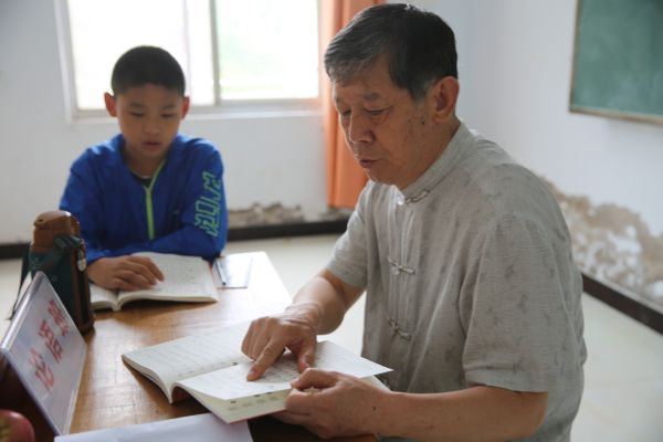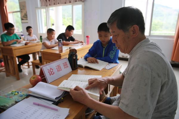 ▲张全民给论语班学生上课 记者 张国平 摄