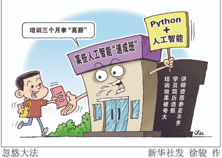 “Python+人工智能”培训班火爆本是市场行为,无可厚非。然而,在“炒概念”的“歪风”之下,各类打着“速成班”旗号的培训机构往往为了吸引学员做出虚假宣传,甚至是违规违法行为。