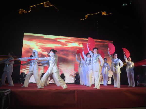 热情洋溢的舞蹈表演、激情奔放的歌曲演唱、幽默风趣的相声表演等,吸引了百余名居民前来观看。晚会紧扣创建全国文明城市主题,为居民表演了舞蹈《上一道坡下一道梁》、男女对唱《牡丹花和放羊娃》、相声《欢声笑语》、中华响扇《众志成城》等节目。其中,中华响扇《众志成城》由社区的一支舞蹈队表演,队长赵小菊说:“这支舞蹈的创作初衷是为了展现疫情期间,志愿者和社区工作人员一起勇往直前的抗疫精神,借舞蹈来号召大家拧成一根绳,终将战无不胜。”