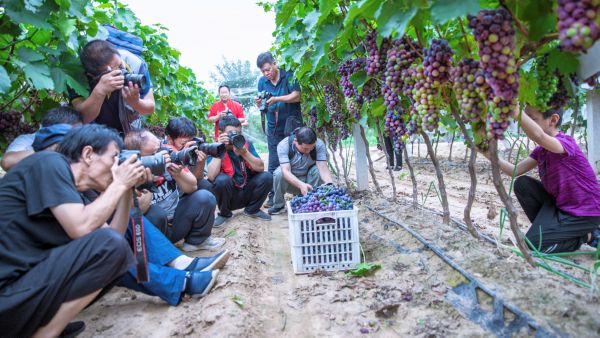 当天,大家用手中的相机聚焦葡萄的田间管理、采摘等精彩画面。 特约摄影 杨建峰
