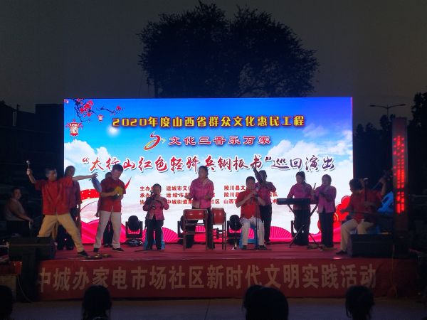 运城晚报讯(记者 冯杨婕)8月2日晚,由市委宣传部、市文化和旅游局主办,市群众艺术馆等单位承办的“歌舞颂小康 共创文明城”运城市2020群众文化惠民生活动,走进盐湖区中城办家电市场社区,给居民们带来了精神大餐。